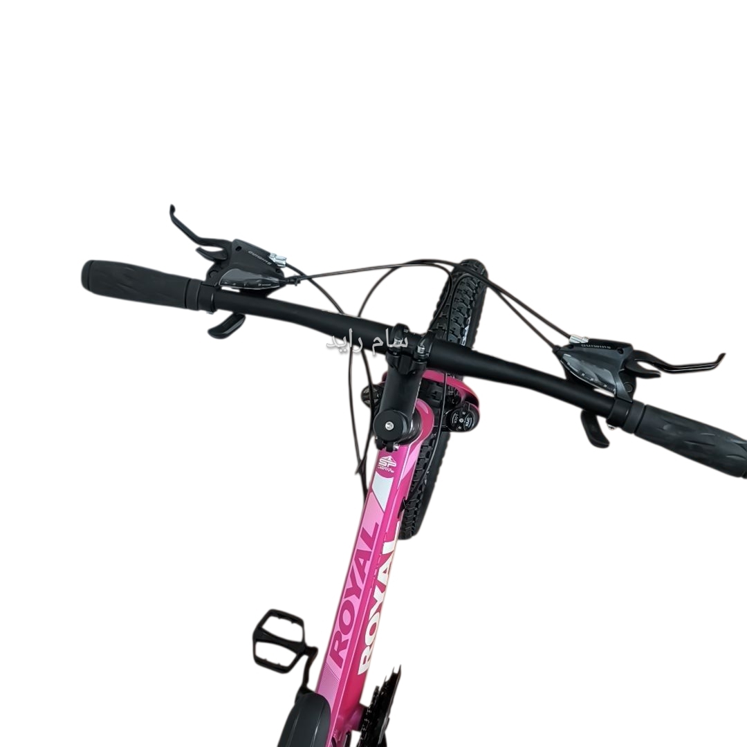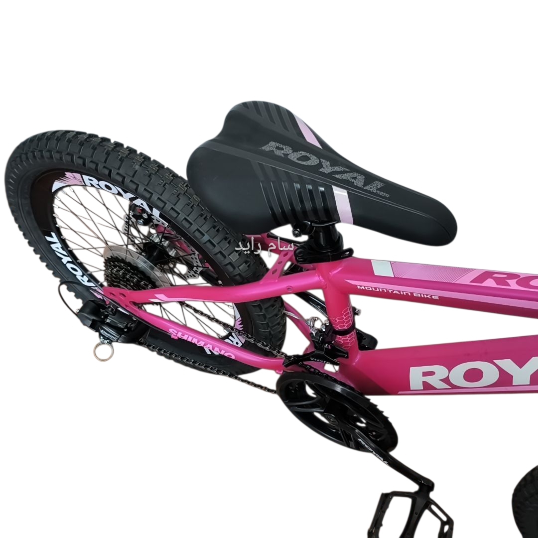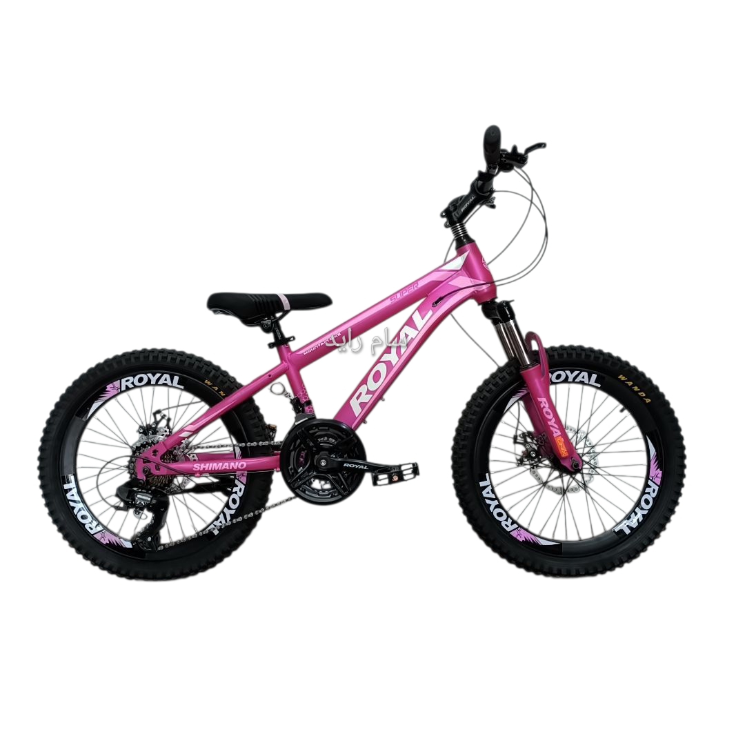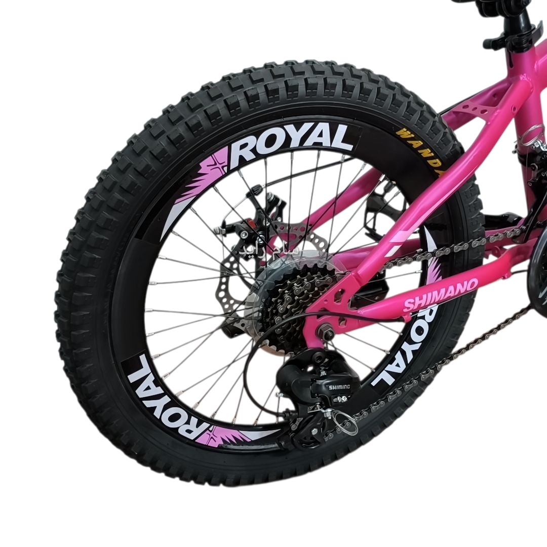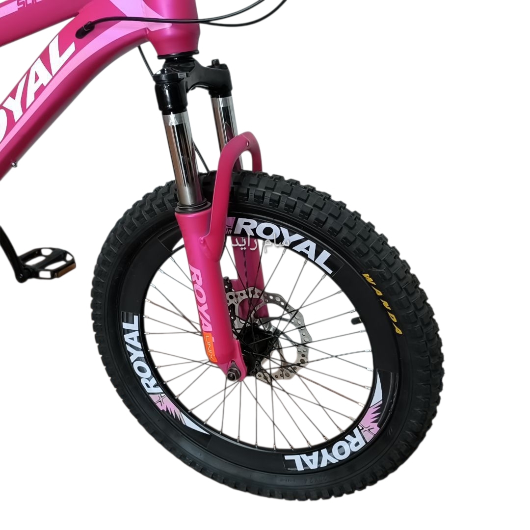 دوچرخه سایز ۲۰ فولاد ترمز دیسکی برند رویال صورتی متالیک تیره