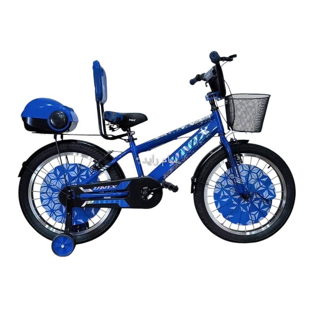 دوچرخه سایز ۲۰ آبی درجه یک پشتی سبد دار لاستیک پهن UNIX