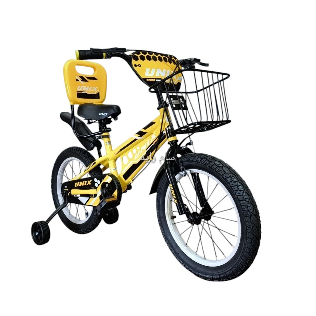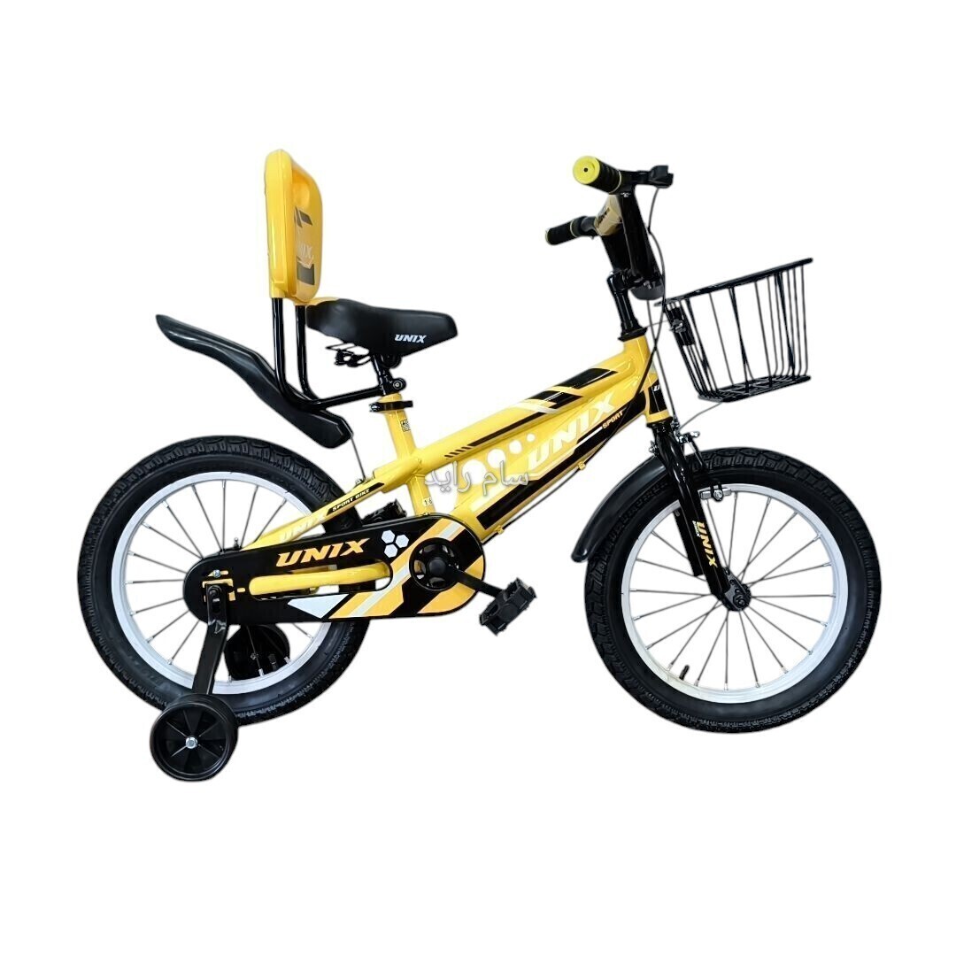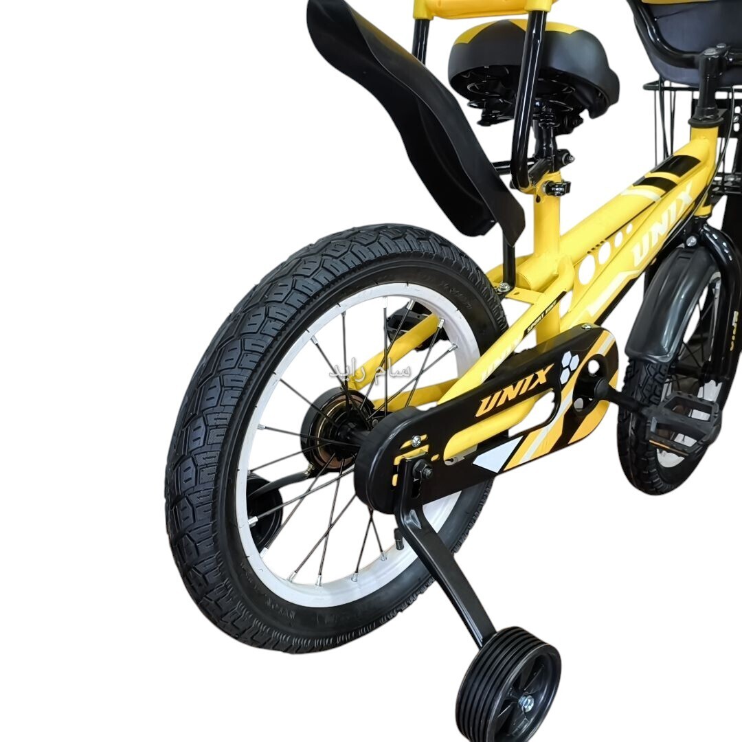 دوچرخه سایز ۱۶ زرد سبد بزرگ لاستیک پهن UNIX