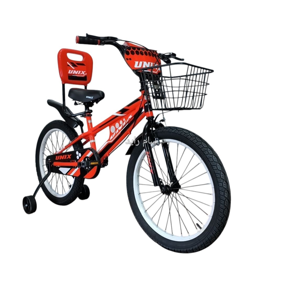 دوچرخه سایز ۲۰ قرمز درجه یک پشتی سبد بزرگ لاستیک پهن UNIX