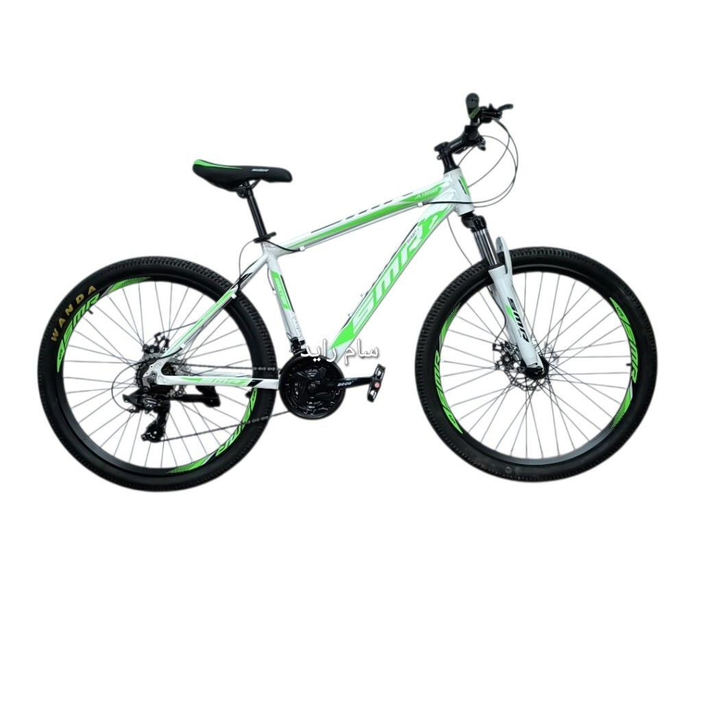 دوچرخه سایز 26 سفید سبز آلمینیوم برند SMR دنده کلاجدار 24 دنده شیمانو