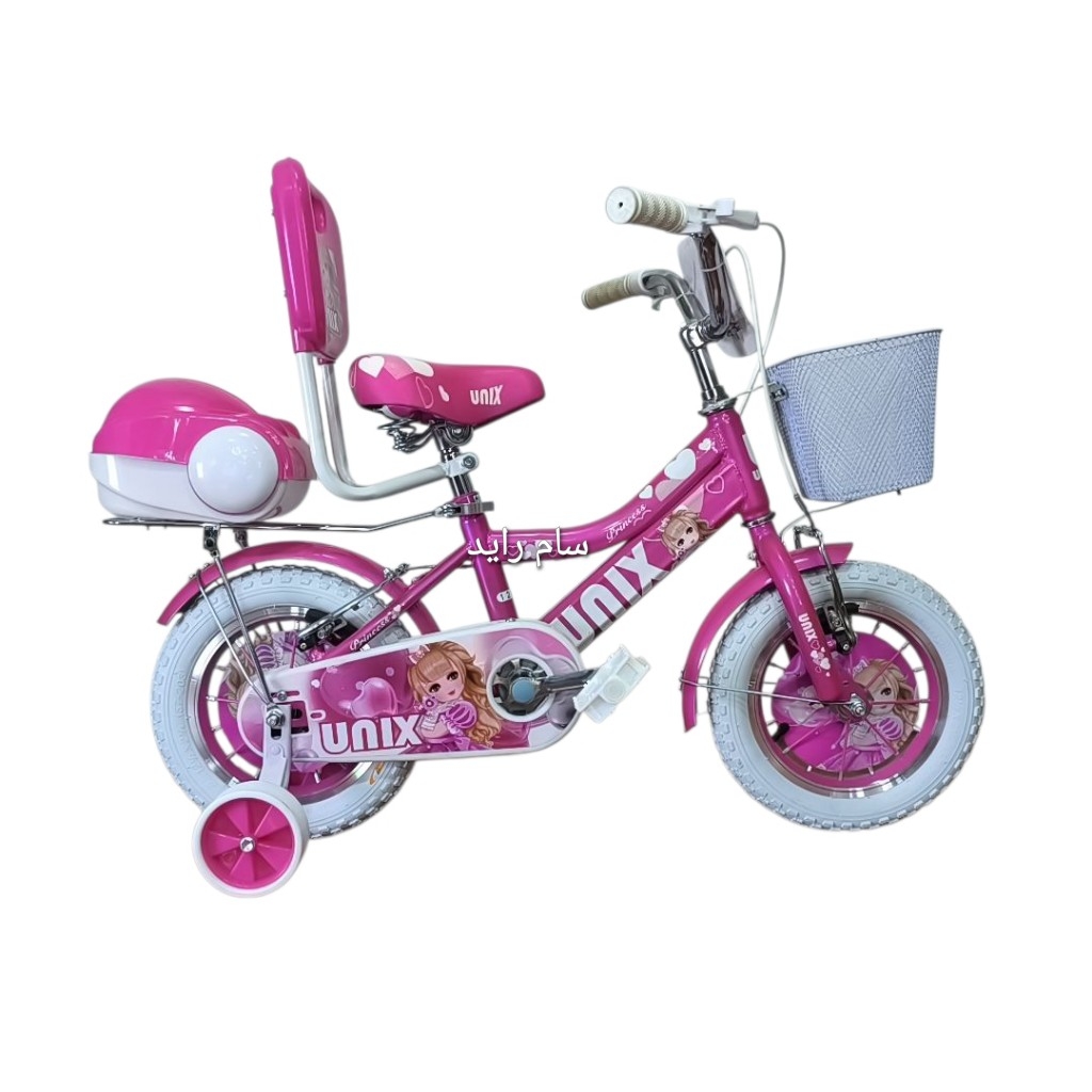 دوچرخه سایز ۱۲ سرخابی درجه یک (سبد صندوق پشتی) پرنسس UNIX