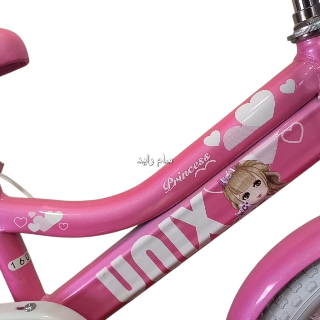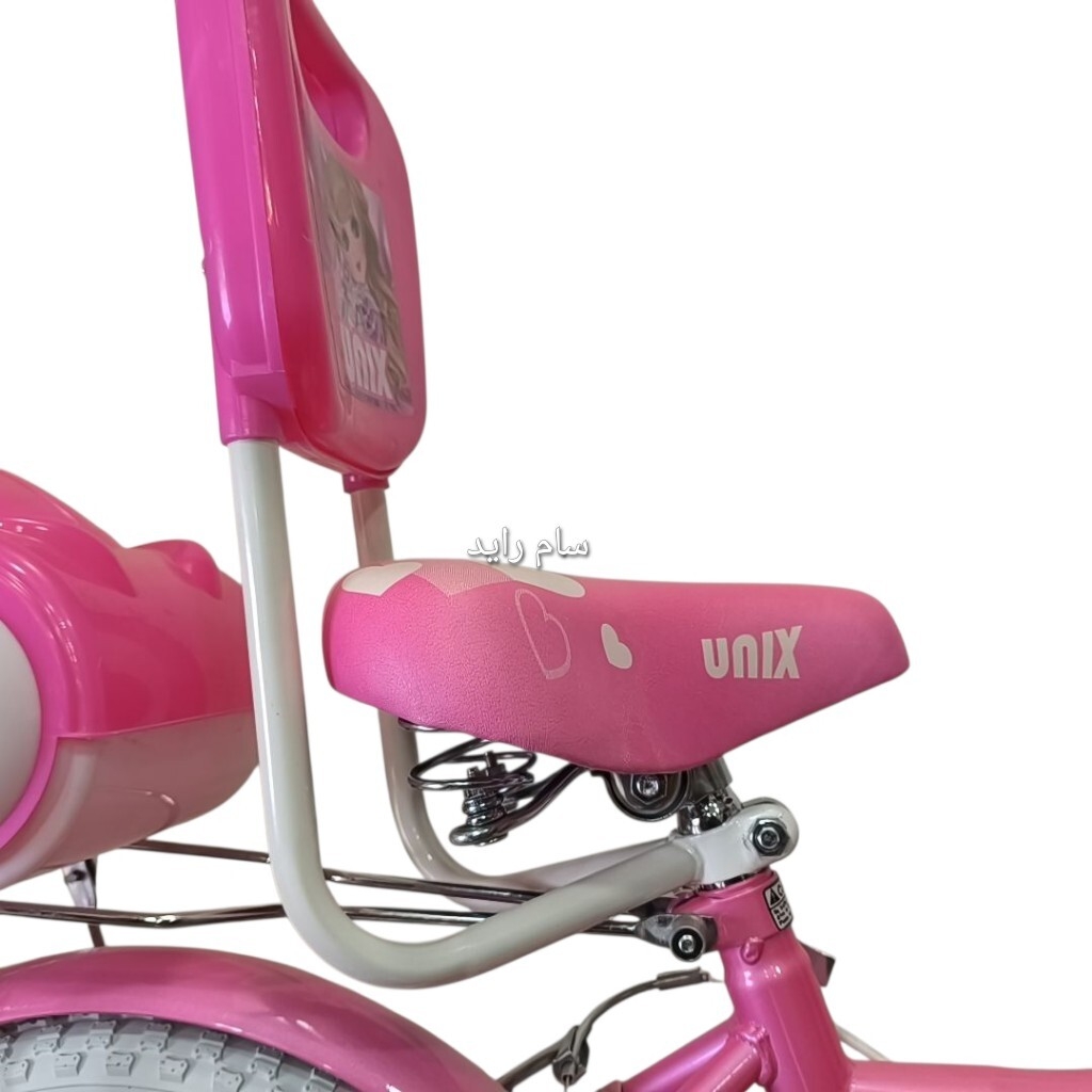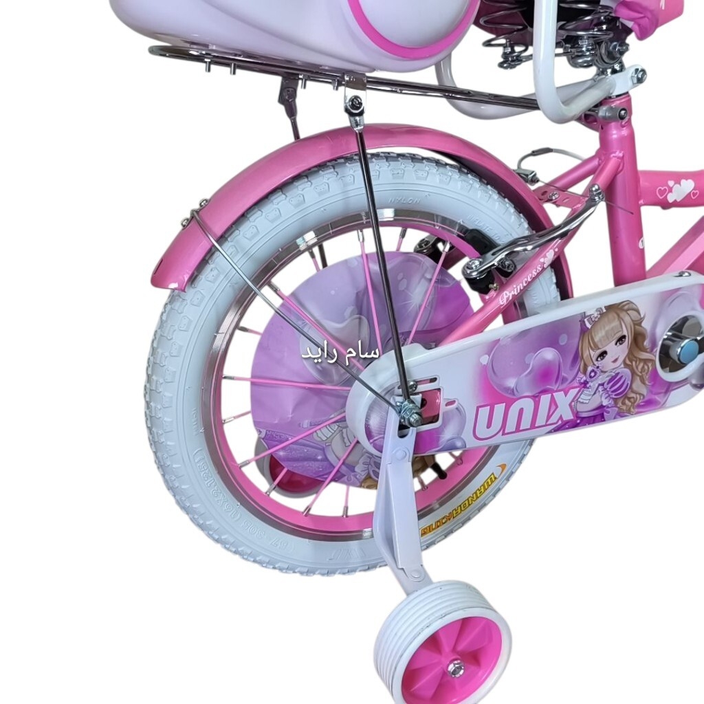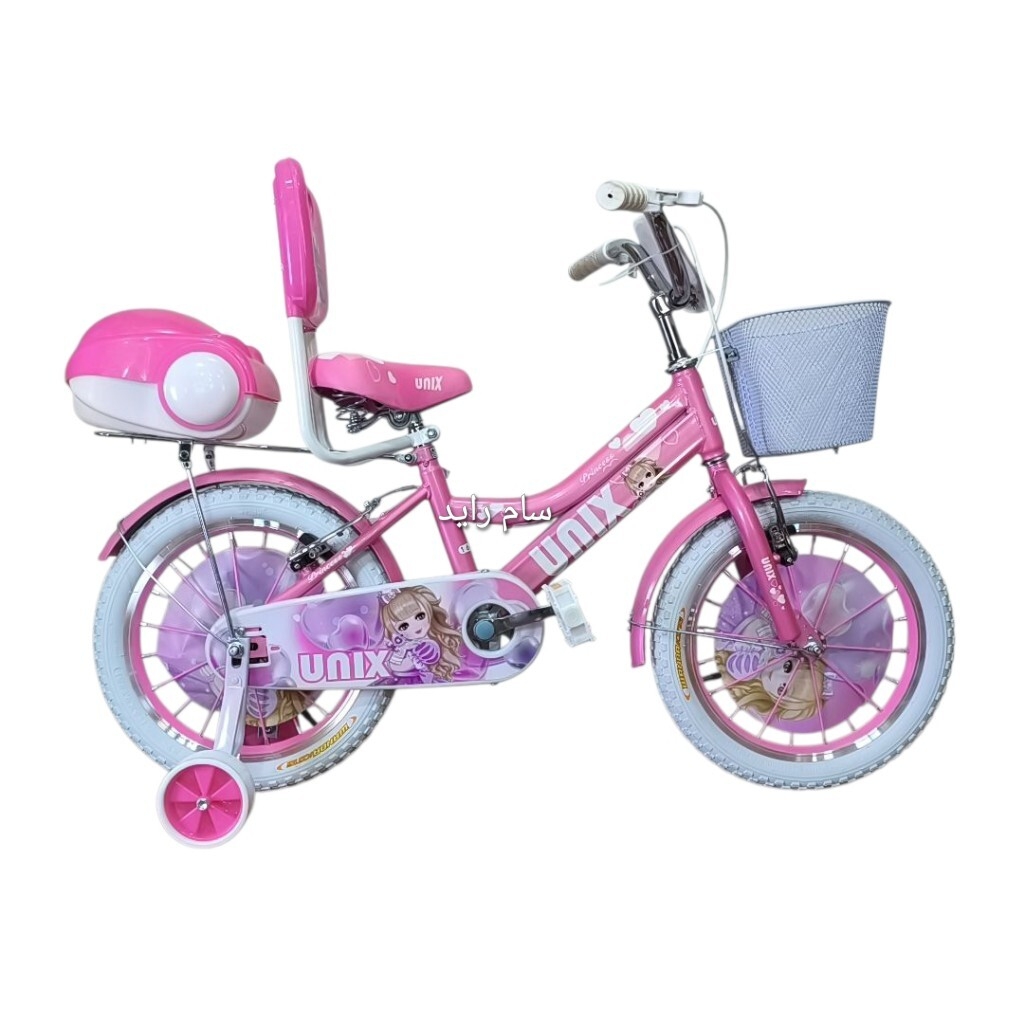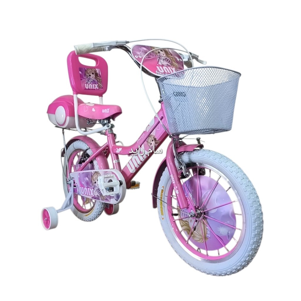 دوچرخه سایز ۱۶ صورتی روشن سبد فلزی لاستیک پهن UNIX