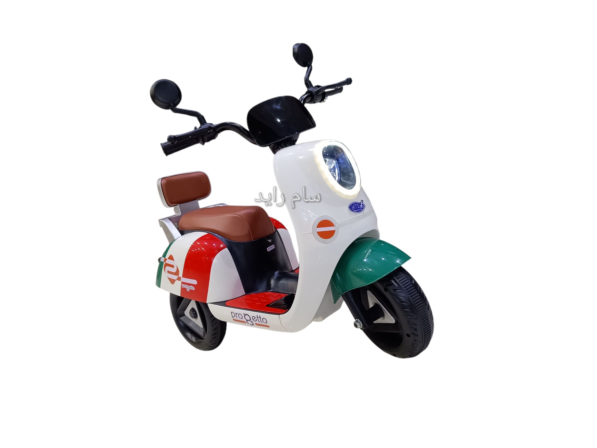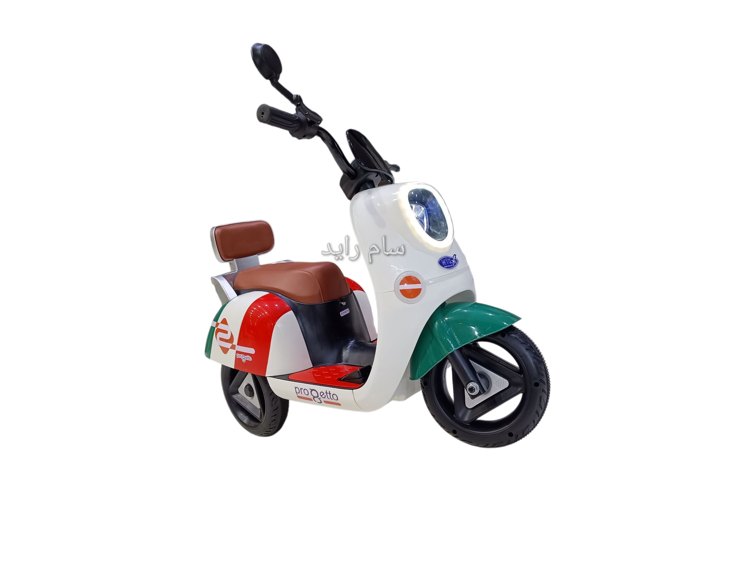 موتور شارژی وسپا پروجتو سفید صندلی چرم ریموت دار